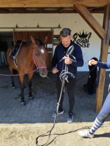 A második napon folytatódott a tanulás, délután pedig különleges program következett: a résztvevők megismerkedhettek a csatlakozással, vagyis a lóval való bizalomra épülő kapcsolatteremtés módszerével. A behívás gyakorlása nagy sikert aratott, és sokak számára életre szóló élményt adott.